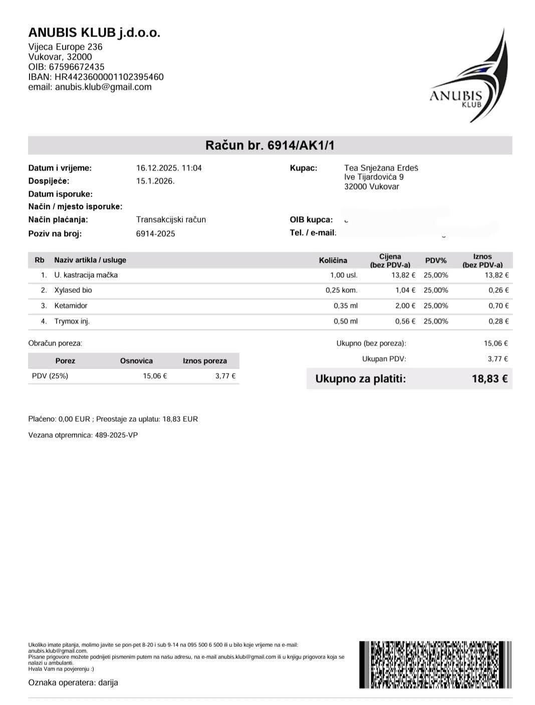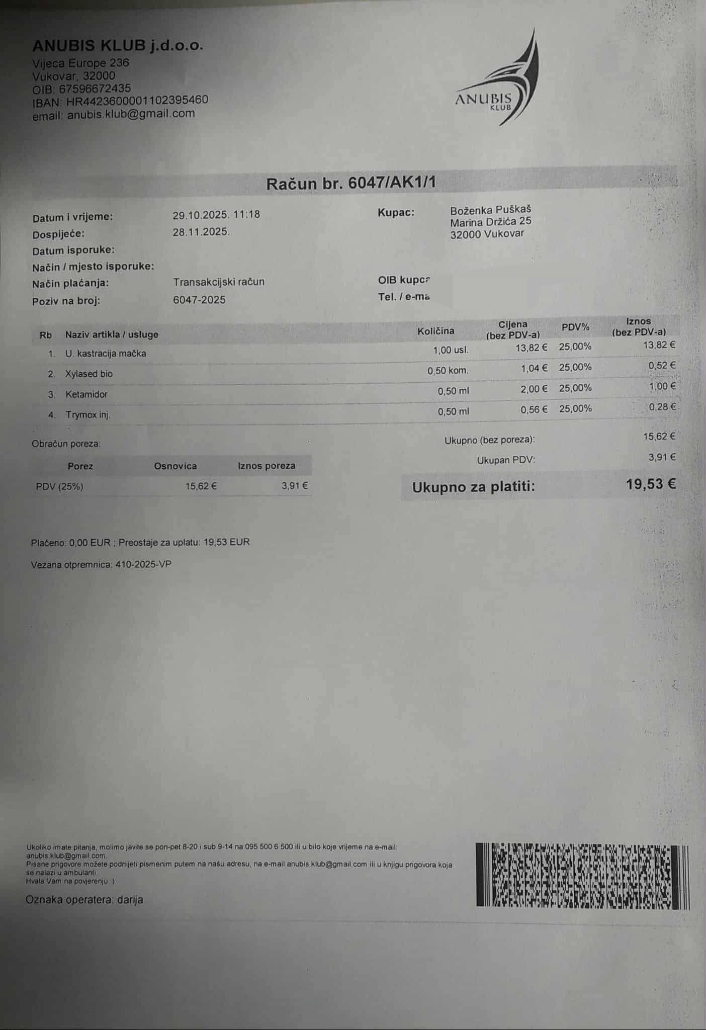 2 Katzen und 1 Hund wurden die Tage kastriert. Die Hündin gehört einer älteren Frau aus Vukovar und die Katzen leben auf der Straße. Unsere kroatische Tierschützerin Maya Shiva hat uns um Hilfe gebeten.