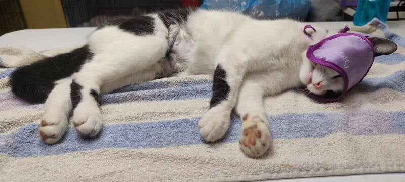 Die Katze die schwach, alt und krank war wurde untersucht und leider hatte sie an den Ohren Krebs. Da sie schon eine Narkose wegen der Kastration hatte würde gleichzeitig der Krebs entfernt. Jetzt ist sie und der Kater kastriert und die Katze ist auf eine privaten Pflegestelle untergebracht. So wie sie ist könnte man sie nicht auf die Straße lassen.